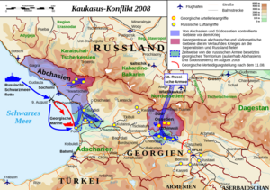 Am 7. August 2008 marschierten georgische Truppen in Südossetien ein, nachdem es schon seit März auf beiden Seiten zu militärischen Manövern gekommen war. Sie nahmen die südossetische Hauptstadt Zchinwali ein. Daraufhin griffen Russland und auch Abchasien in den Krieg ein und entsendeten Truppen, die Südossetien zu Hilfe kamen. Viele georgische Städte wurden bombardiert. Georgien zog sich daraufhin am 10. August aus Südossetien zurück.
